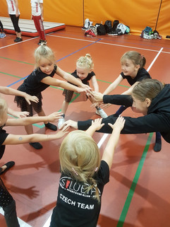 A bez Tanečního a sportovního klubu SILUETA PRAHA by to také nešlo, takže jsme byli již v 10 hodin ráno na místě. Poznali jste nás podle červených íček a loga SILUETY na tričkách. Děti z našich přípravek, které již rok zkouší hopsat v rytmu rokenrolu, přišly podporovány svými rodiči a den si opravdu užily. Taneční sukýnky, třpytivé ozdoby a dobrá nálada – to je vše, co jim stačilo ke štěstí. Nadšeně ukazovaly, co se za ten první rok naučily. A také pozorovaly své starší kamarády, kteří již nějakou dobu závodí a snažily se okoukat, co jednou také budou umět, když dál budou trénovat.