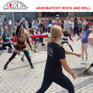 Celé čtvrteční odpoledne představovali trenéři SILUETY spolu s tanečnicemi ideální sport pro děti – akrobatický rokenrol. Děti, které navštívily spolu se svými rodiči Veletrh kroužků u ZŠ Masarykova v Praze 9 Klánovicích, se dříve či později zastavily u stanoviště AKROBATICKÉHO ROKENROLU.